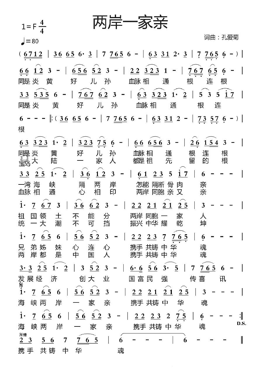 《两岸一家亲》作词作曲:孔爱菊 演唱:殷梅 歌词书法题名:邵文化